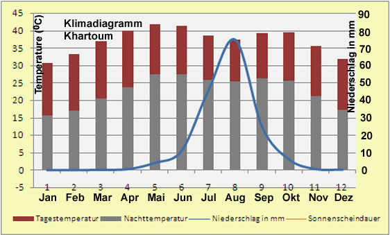 Klima, Temperaturen und Reisewetter für Khartoum im Sudan